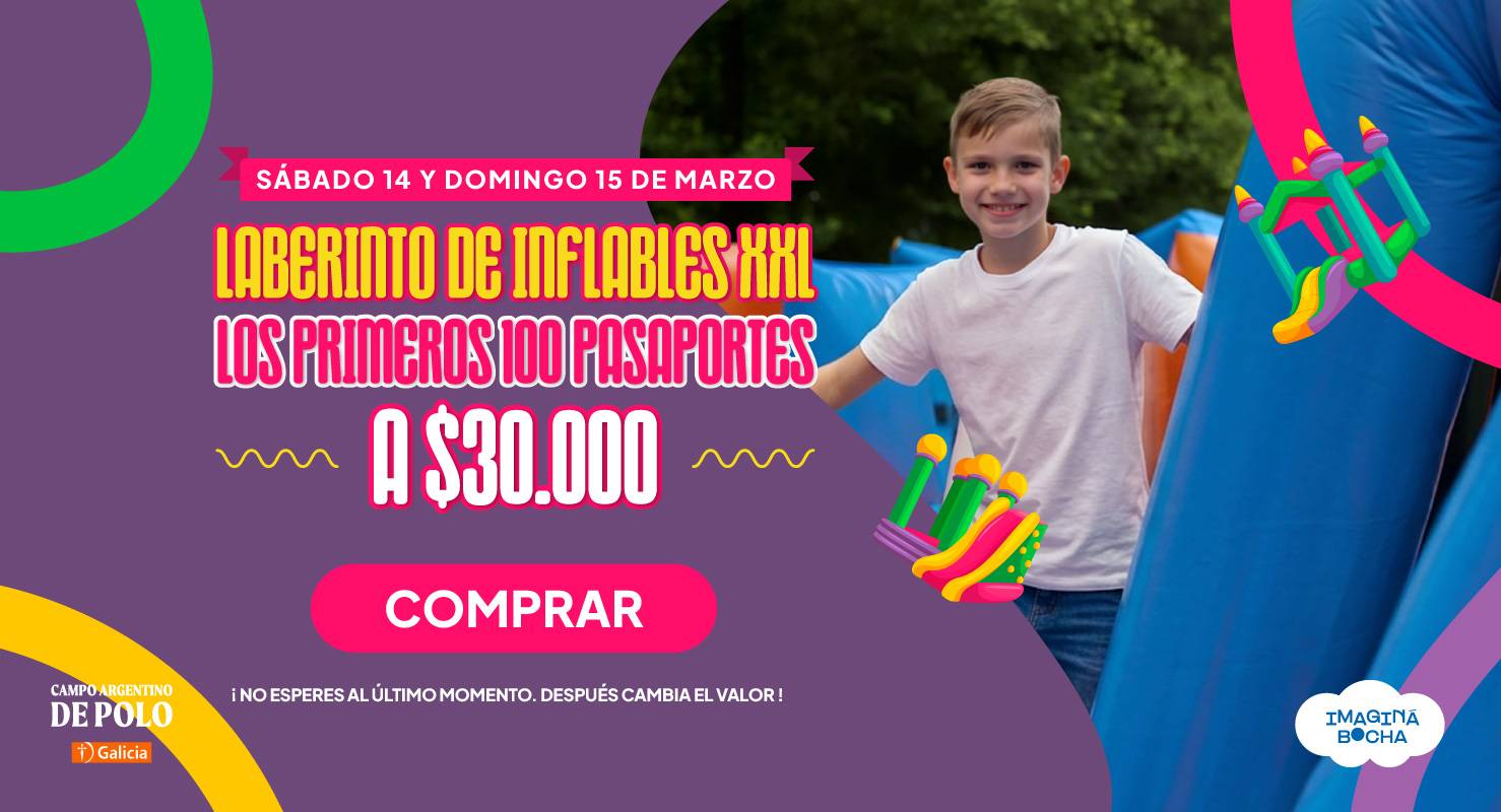 Con el pasaporte imaginario los chicos/as van a poder participar y disfrutar de Super Laberinto, Mundos Imaginarios, Inflable XL, Rampas Inflables, Inflables XXL, Peke Piki Escalador y Peke Piki Aéreo. No incluye: Safari.