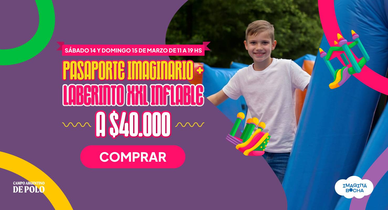 Con el pasaporte imaginario los chicos/as van a poder participar y disfrutar de Super Laberinto, Mundos Imaginarios, Inflable XL, Rampas Inflables, Inflables XXL, Peke Piki Escalador y Peke Piki Aéreo. No incluye: Safari.